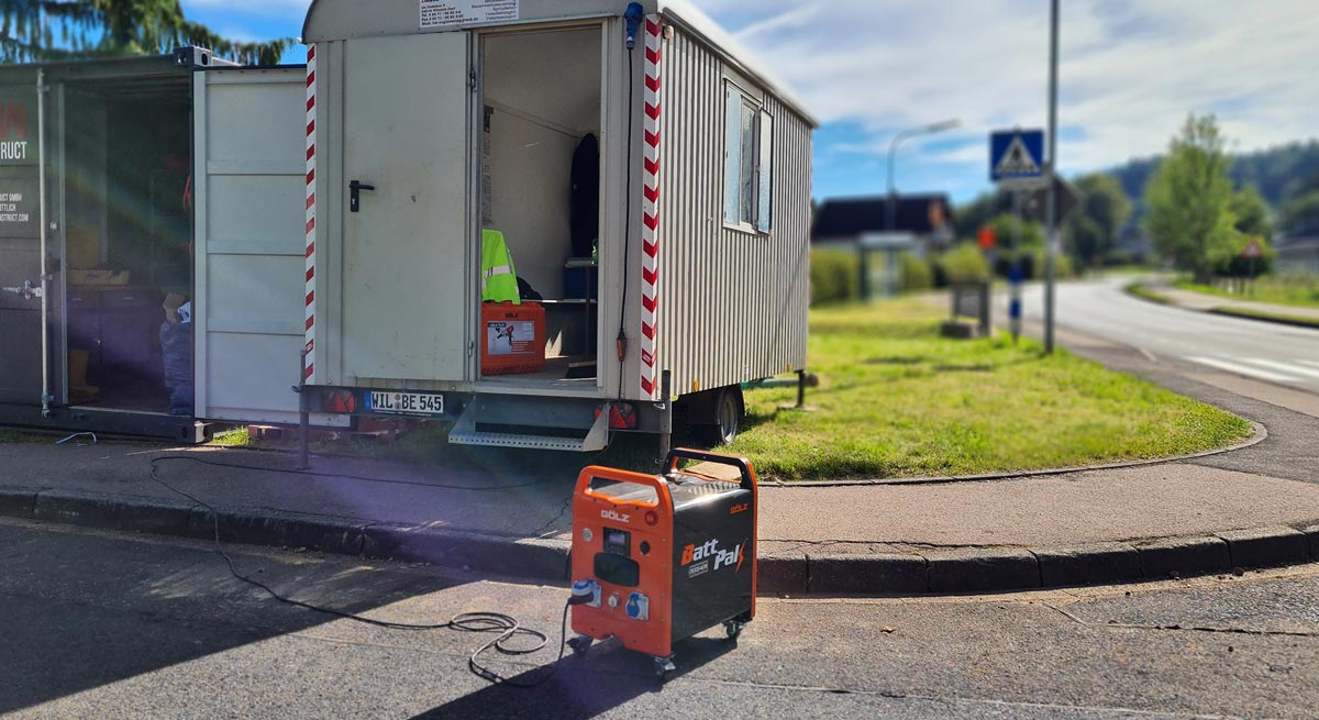 mit 5 kW Leistung und einer Kapazität von 4,8 kWh, der besonders auf Baustellen viele Vorteile bietet. Er ermöglicht den Betrieb aller kabelgebundenen 230V Maschinen, wie Bohrmaschinen, Sägen und